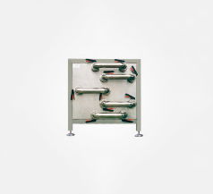 在開關(guān)柜的穿通口上用于開關(guān)設(shè)備的擋板框架。用于擋板框架的模塊式系統(tǒng)以及一種用于裝配由模塊式系統(tǒng)的元件構(gòu)成的擋板框架的方法。為了徹底簡化擋板框架,建議產(chǎn)品的擋板框架模塊化地這樣構(gòu)成,使它由成對使用的框架節(jié)段組裝而成。在此根據(jù)需要為了提供所需的擋板框架尺寸實(shí)現(xiàn)組裝。